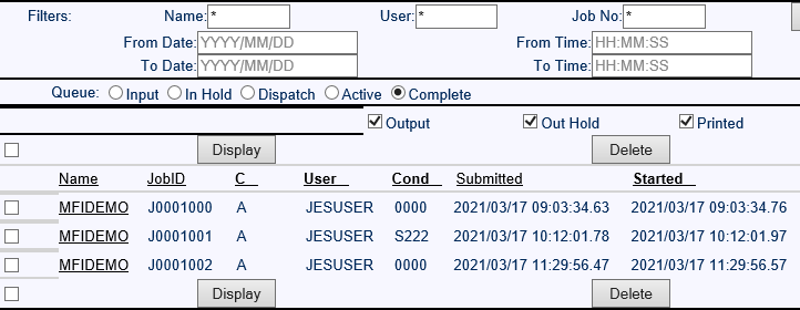 SYSOUT results (one for the EXTRACT and one for the SORT). Click on the names for these to see their details.