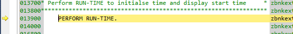 The PERFORM statement executes and takes you to the line starting with IF TIMER-START.