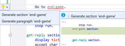If the IDE does not have information about where a section or paragraph is located in the code, it displays a message COBCH0348