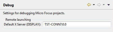 The test checks whether an X Window can be opened, using the location taken from the Debug Preferences page (Window > Preferences > Micro Focus > Debug).