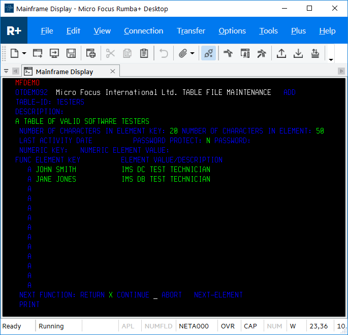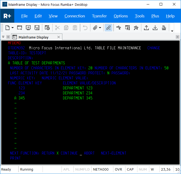 This action takes you to the TRANCODE - MFDEMO - ENDED screen.