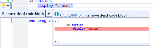 Before you can use the quick action, you need to perform a dead statements code analysis on your code.