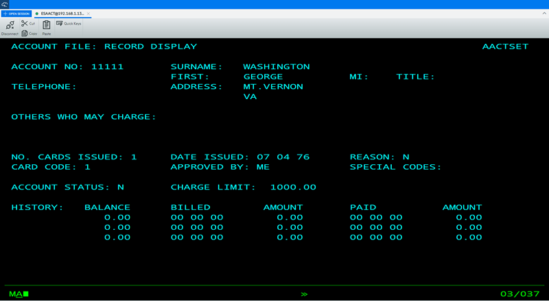 - Clear the screen of your TN3270 emulator to return to the main menu, then clear the screen again to exit the transaction.