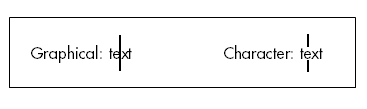 In a graphical environment, the bar control covers any portion of text that occupies the same space as the bar. In a character-based environment, the bar does not cover the text, and it is displayed as a broken line.