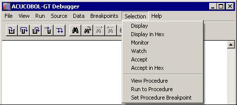 | *Run to Procedure | Sets a temporary breakpoint at the selected procedure and continues program execution. The program runs until it reaches the selected procedure (or another breakpoint). |