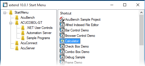 Since the introduction of Windows 8, the Windows program menu does not display programs in a hierarchical way. For the extend Interoperability Suite, this would mean that all the programs relating to AcuBench, ACUCOBOL-GT, AcuConnect, etc... would be displayed as a flat list, and it would be difficult to distinguish which programs were related to which products.