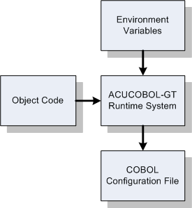 Users of ACUCOBOL-GT can modify many aspects of the run-time environment on a site-by-site or user-by-user basis without recompiling. This is accomplished in a text file known as a COBOL configuration file, and by environment variables.