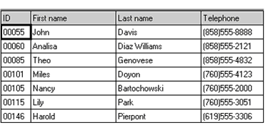 Grids are organized into rows, columns, and records. In a grid, a row is a grouping of cells that appear on one line in the control. A record is one or more rows that are treated as a logical unit. A column identifies a particular cell in a record. By default, a record occupies one row in a grid, but you can arrange for a record to wrap around to the next row when it passes the right edge of the grid. When this occurs, a record occupies more than one row in the grid. You might want to construct a grid like this when you want to see many fields in a data record at once. Alternatively, you can have the grid use scroll bars to access cells past the right edge of the control. Column, row, and record numbers all start at 1.