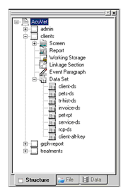 - In the Structure view of the Workspace window, open the desired Program node, then expand its Data Set node to see a list of available data sets.