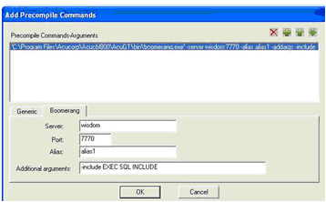 2. Mark the check box next to Generic or Boomerang Precompiler (-Pg), then click Browse to open the Add Precompile Commands interface.