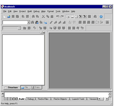 Access to most AcuBench functions is provided directly in the main application window. The size and layout of most screen elements is customizable. User interface elements, such as toolbars and sub-windows, can be moved, docked, undocked, made visible, or hidden at your discretion. Position and visibility attributes are retained from session to session so that the main application window has the same configuration and appearance as when you ended your last session.