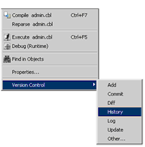 Once you have added commands to the Version Control interface, a new menu option, Version Control, is added to the pop-up menu that appears when you right-click a project node in any Workspace Window view, a program node in the Structure view, a file in the File view, or a data layout in the Data view.