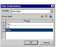 When you use Drag-and-Drop to create a radio button, the initial steps are the same as any other control. You select a control type and a data item, then drag the data item to the screen. When you do this, the Make Radio Button dialog box appears.