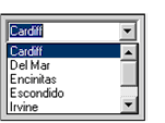 A combo box is an input control that combines a list box and an entry field. Typically, it contains several options in the list portion of the combo box, and the end user can select the needed option with the mouse pointer, or write the needed option in the entry field portion of the combo box. You can create three kinds of combo boxes: drop-down (users can type in the entry-field portion of the control and use a button to reveal the list, which is otherwise hidden), drop-list (users must make a selection from the drop-down list and cannot type in the entry-field), and static list (the list is permanently displayed on the screen).