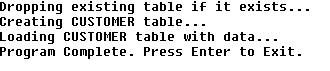 The create program creates a table and loads data into it from the text or line sequential “customer” file. The table that is created provides the source data for the other sample programs, so be sure to compile create.sqb and run create.acu before working with the other programs.