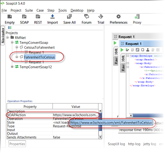 1. Ensure that SoapUI is still open, showing the FahrenheitToCelcius request and response XMLs.