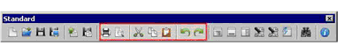 The first group of Standard toolbar buttons let you create a new file, open an existing file, save a single file, or save all files. Other buttons (highlighted in the illustration), allow you to print a file; preview print output; cut, copy, and paste selected text; and undo or redo previous editor actions.