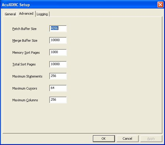 Enter the size of the fetch buffer in bytes. The fetch buffer indicates how much data will be fetched or retrieved from a query at time. Allowable values are 1024 through 32766. Default value is 4096. |