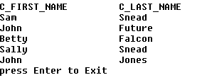SELECT C_FIRST_NAME, C_LAST_NAME FROM CUSTOMER