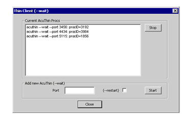 acuthin process on the client. The thin client waits for the transaction server to start the runtime.