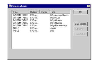 You access this utility's interface via the Tools > acu4glfd command. You need to choose and connect to a data source. When the tables contained in the data source are displayed, users can direct the utility to create FDs and SELECTs.