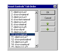 As you cut, paste, and move controls around a screen form in the Screen Designer, you are likely to need to make adjustments to the controls' tab order. These changes can be made quickly and easily through the Reset Controls' Tab Order dialog box.