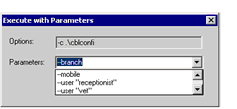 You can use the Parameters combo box to enter your command line parameters or expand the box to see and select from a list of previously used parameters. The combo box holds up to twenty previous command lines.