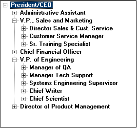 Items in a tree view control are placed within the hierarchical list according to parent and child relationships that you specify. The special property PARENT allows you to specify whether an item is at the top level of the hierarchy (PARENT = 0, the default) or is the child of another item in the hierarchy (PARENT value set to the ID of the parent item).