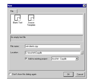 3. Specify a name for the new file. If you used the File > New command to open the New dialog, the default extension is .cbl.