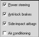 A check box control includes a selection box and a text label. When a user selects the control, a check mark appears in a check box. Typically, check boxes are used when you need to provide the end user with a limited number of choices from which any number may be selected, or when you want to present the end user with an option that may be turned on or off. Check boxes are also used to give the end user a Yes/No or True/False option.