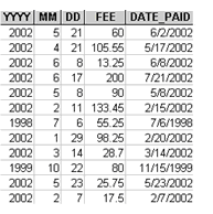The date_paid field is defined in the sample file as an elementary item of type NUMBER. Inserting the DATE directive before this line maps the type to DATE/TIME (in Access) and changes the format of the date in the table, as shown below.