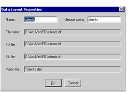 The Data Layout Properties dialog box also lists the name of the data file associated with the file definition, as well as the path and filename for the DLT file and its FD and SL COPY files. This can be especially useful when you are working with shared DLT or FD/SL COPY files to verify that you are working with the correct version of the correct file. Once the DLT has been created, these paths cannot be changed.