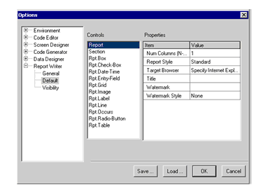 The result of any change to a report element's defaults is reflected in the Property window each time you create a new element of that type.