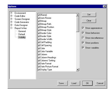 You can also click one or more items in the list, then use the Set and Clear buttons to add or remove properties from the Property window.