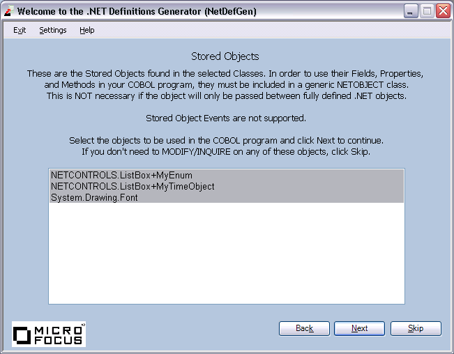 Skip Don't care about Stored Objects? Click the Skip button and no NetObject definition file will be generated.
