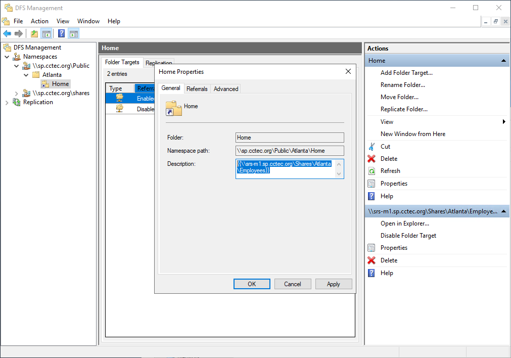 File Dynamics can parse the description field on a DFS folder to determine which of several enabled targets is the primary, unambiguous target. This allows File Dynamics to manage namespaces with multiple enabled targets in a DFS link.