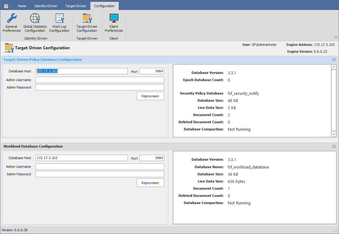 The Target-Driven Database Configuration heading is blue, indicating that the fields in that region of the page can be edited.