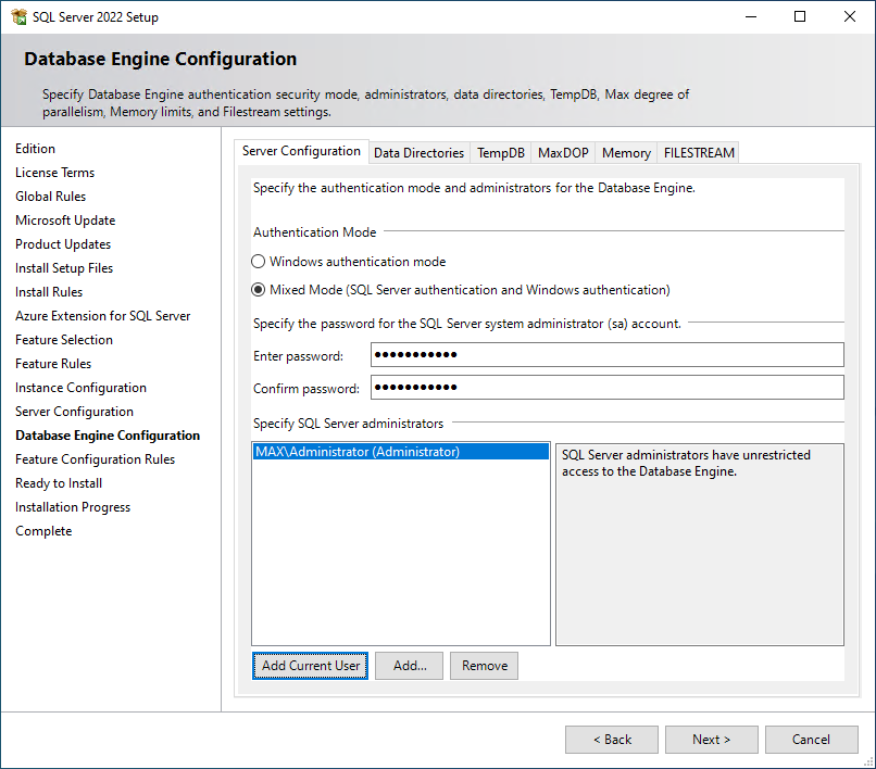 Installation procedures will vary based on your version of SQL Server. The following procedures are specific to Microsoft SQL Server 2022.