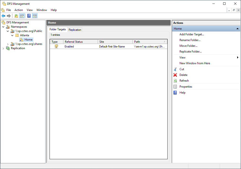 If a DFS namespace is used for high availability, such as ensuring that users can access a replicated copy of their data, it might be appropriate to create multiple targets in a DFS link and disable all but one. If the enabled link target becomes unavailable, an administrator can disable the downed target and enable a replication target. As long as only one target is enabled for a given DFS link, File Dynamics can successfully provision and manage storage through the DFS path.