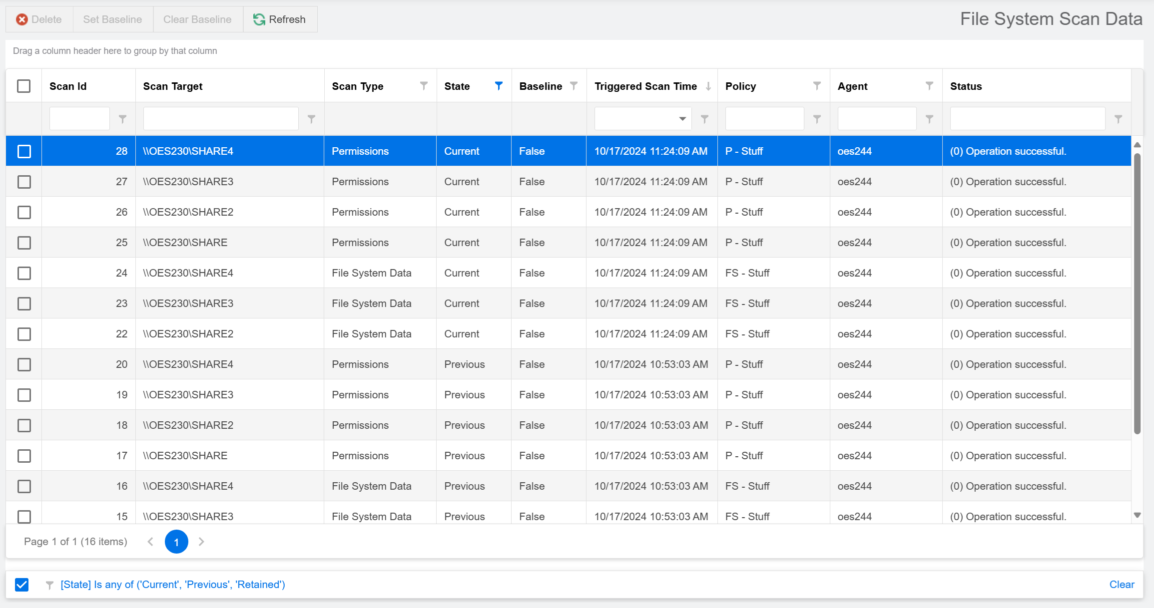 To delete specific scan data: