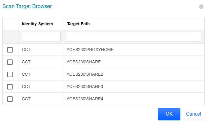 Click Add to open the Scan Target Browser dialog and specify storage resource scan targets for the scan policy.