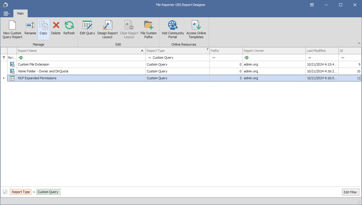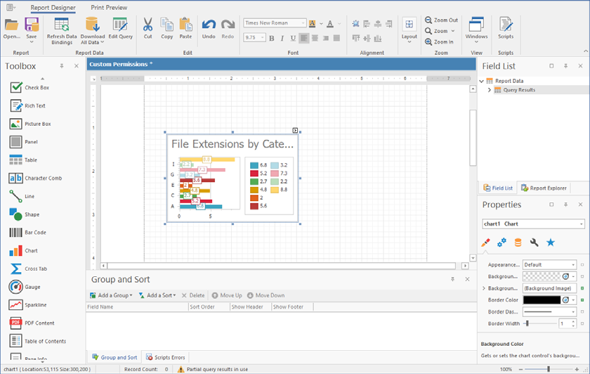 After creating a Custom Query report through either the Report Designer Query Editor or the Query Editor built into the browser-based administration interface, you can then design the report layout.