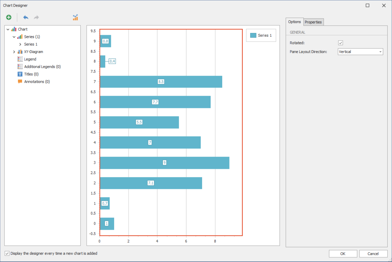 - Click and drag a Chart from the Standard Controls region to the band to launch the Chart Designer.