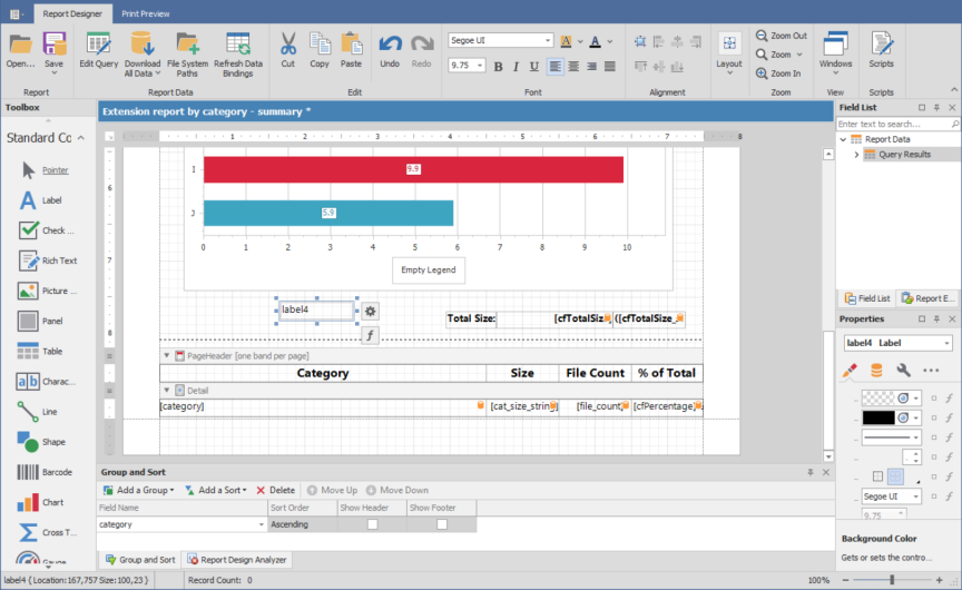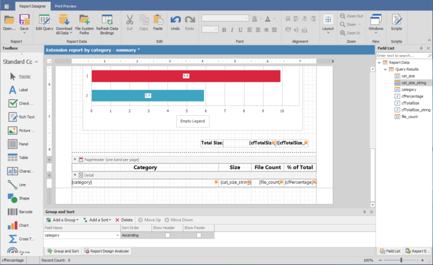 For example, File Extensions by Category. - Below the Chart menu, select Category Size.