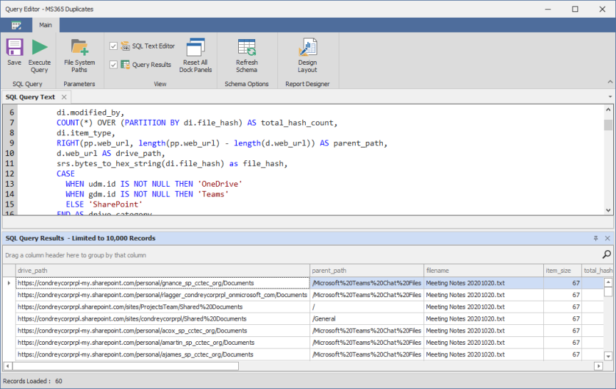 Once Agent365 has scanned the data and associated permissions for Microsoft 365 file repositories, including OneDrive for Business, SharePoint Online document libraries, and Teams document libraries, you can use the prebuilt custom queries and associated report layouts in https://filequerycookbook.com to generate reports.