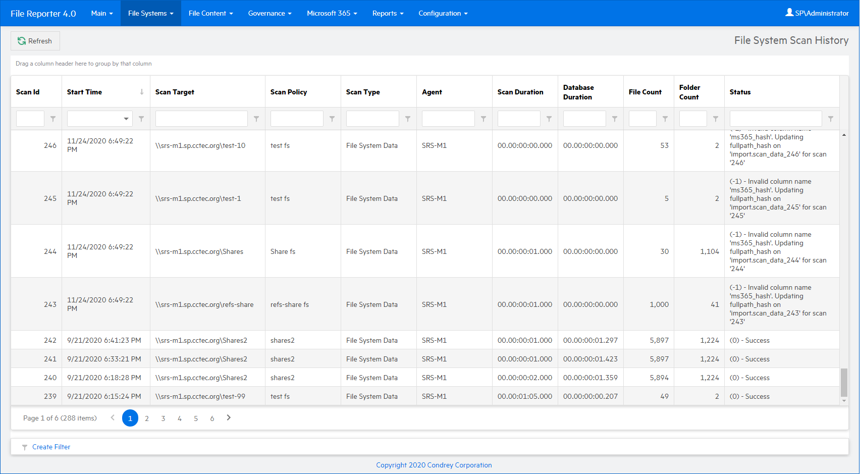 Select File Systems > Scan History.