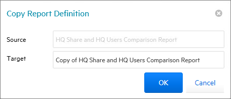 NOTE:Copying a report definition does not copy the content in the Description field, nor does it copy the report schedule.