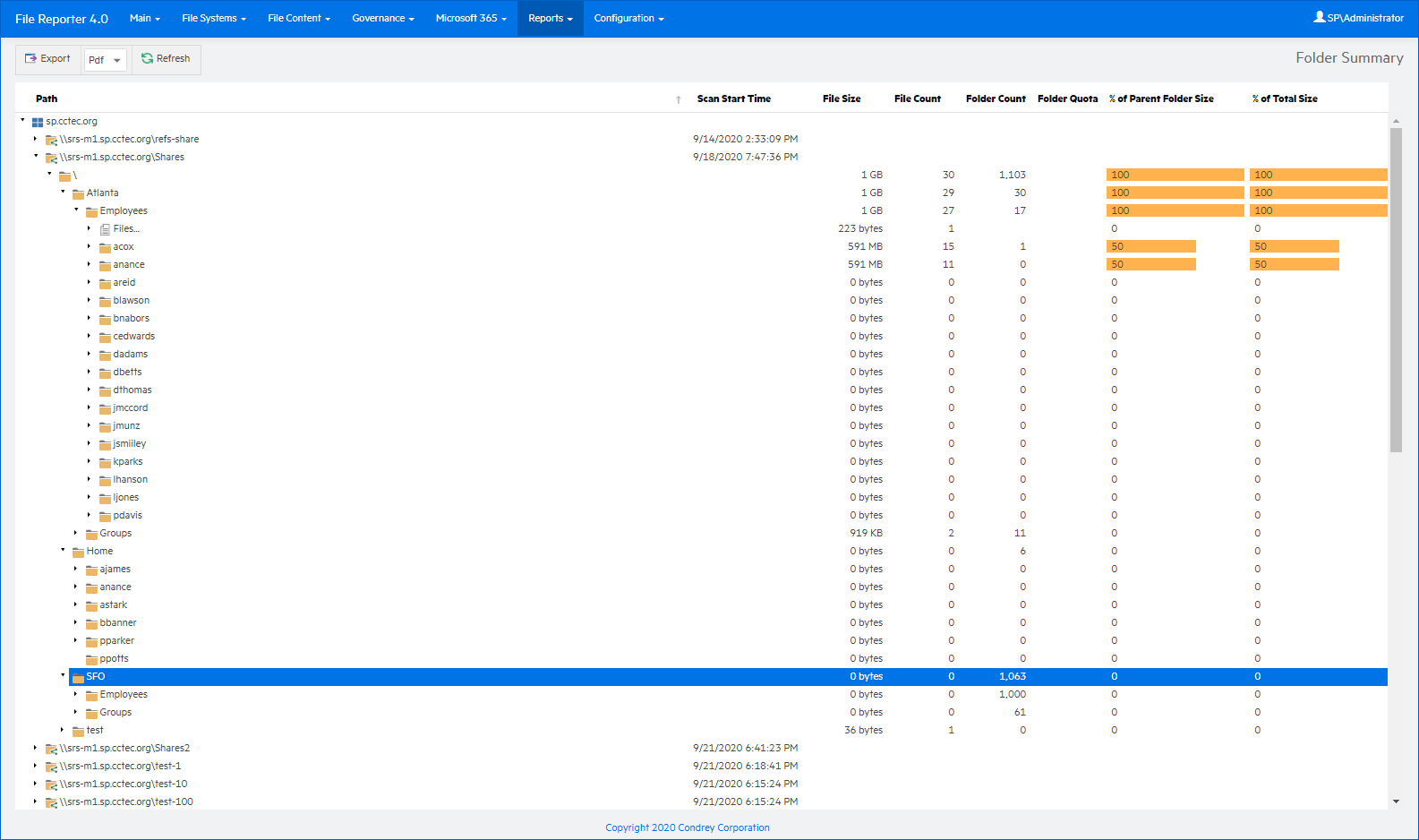 The Folder Summary feature provides you with a visual folder structure according to the latest scanned file system data. Folder Summary also provides extensive summary information for the folders and files.