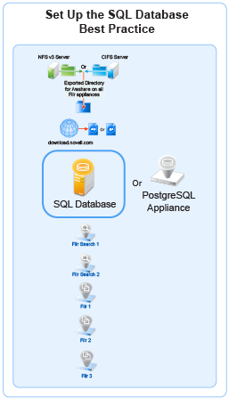 Figure 8-3 illustrates that an SQL database is the second component deployed (after shared storage) when creating an expandable Filr deployment.