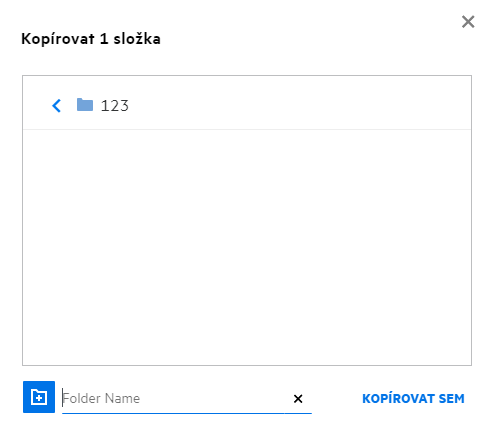 Při výběru možnosti Složka se zobrazí pole Hledat složky. Zadejte název složky, případně první tři písmena z něj. K výběru se nabídnou všechny složky s názvem odpovídajícím řetězci zadanému do vyhledávacího pole. Vypíšou se složky ze všech pracovních oblastí systému Filr, k nimž máte přístup (Moje soubory, Sdíleno se mnou a Síťové složky). Když na název složky umístíte ukazatel myši, zobrazí se přesná cesta ke složce.